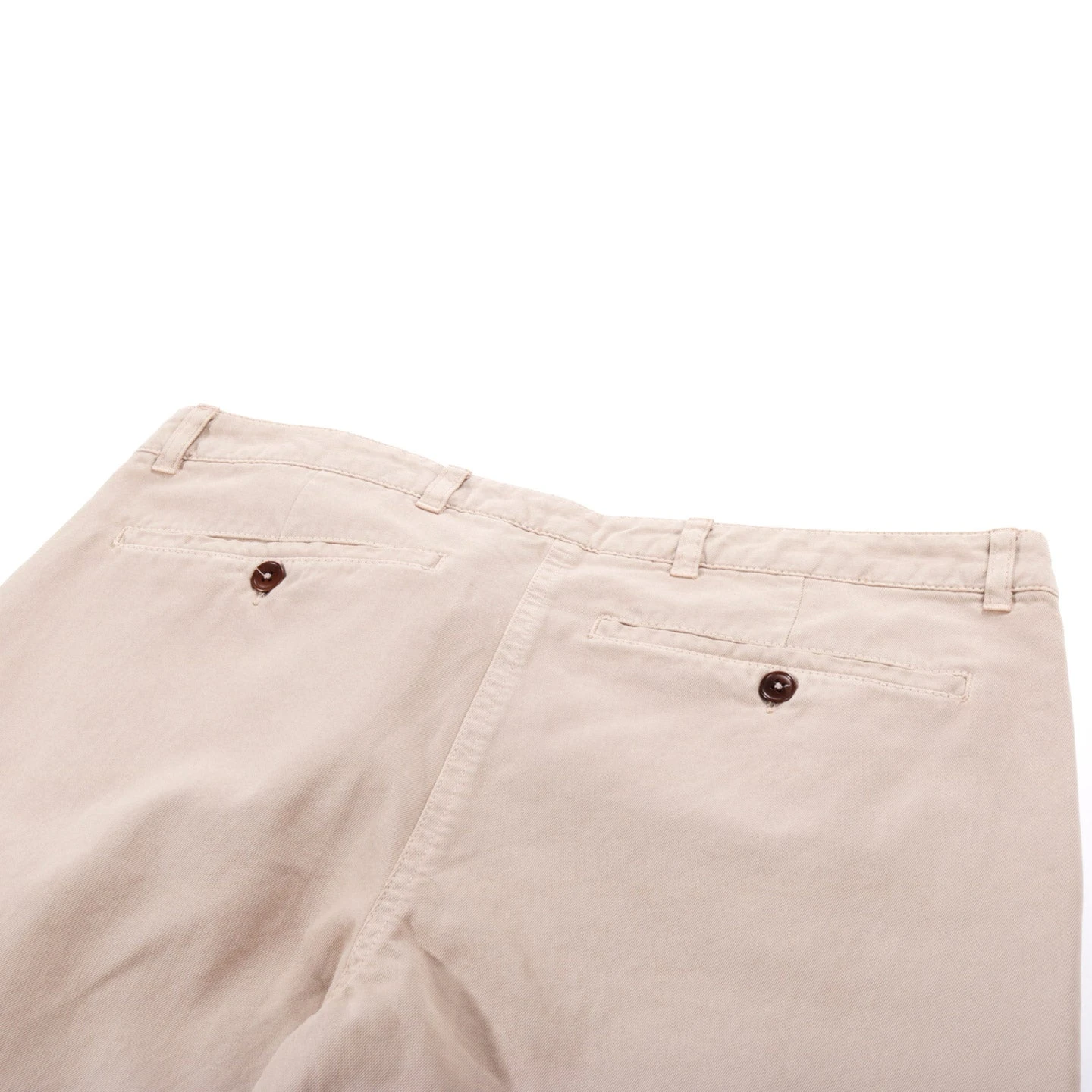 A KIND OF GUISE PERMANENTS TROUSERS WASHED CAMEL. CLASSIC PAIR OF SLACK WITH A SLIGHTLY TAPERED FIT AND FLAT FRONT. CUT FROM A STURDY YET SOFT GERMAN COTTON TWILL.HAS FORWARD SET SIDE POCKETS AND A PAIR OF BUTTON-UP BOX BACK POCKETS. SOFT WASH FINISH.