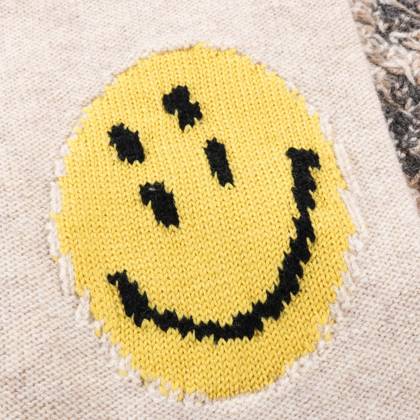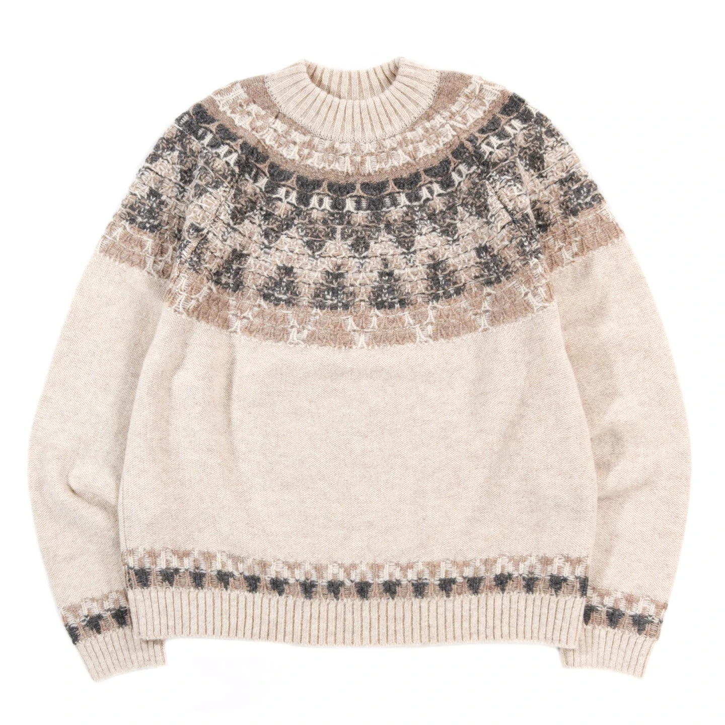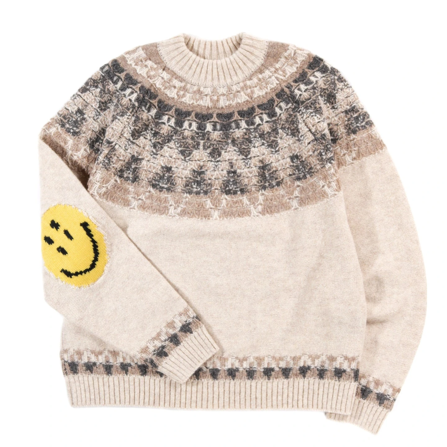 KAPITAL 5G WOOL NORDIC SMILIE PATCH RAGLAN SWEATER ECRU